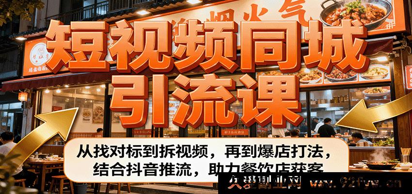 该课程是针对餐饮行业的同城短视频门店引爆实战培训,重点围绕短视频引流(三种方法对比分析)、门店爆款视频模板(拆解对标案例与提炼核心卖点)、流量运营逻辑(抖音推荐机制与达人探店合作)三大关键板块,通过12个课时的系统教学,助力餐饮商家快速提升线上知名度。课程融入视频素材库搭建、直播内容拆解等实用技能,学员可掌握单条视频吸引超100位顾客到店的能力(实际案例表明单店每月额外增收8万余元)。