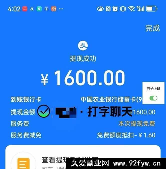 5. 一旦开始做就有收入,多劳多得,提现速度超快,瞬间到账。