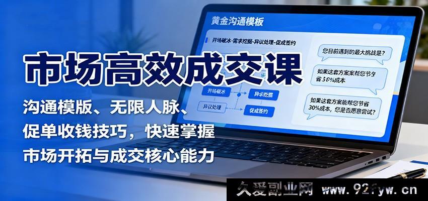 此课程紧紧围绕市场成交的完整流程展开,集结了众多实战教练的宝贵干货分享。其中有郝涵教练独特的沟通模板、获取无限人脉的巧妙技巧、系统的成交方法,更有锦晟教练的促单收钱策略、百合老师的促升级实战妙招等。同时还配备促单对话截图制作教程,以及渝翔、少卿、柯林等老师的出单经验细致复盘,甚至还有能让客户活跃起来如同“让哑巴开口说话”般的激活技巧。从帮助学员实现认知觉醒,再到推动实操落地,全力协助学员迅速掌握市场开拓与成交的核心关键能力。