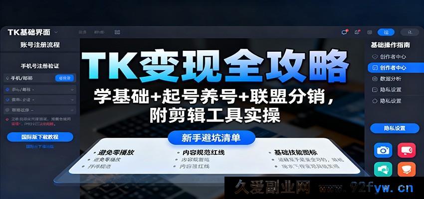 课程内容:1-玩赚新闻媒体平台,截流同行资源(仅限VIP,私聊开通权限).html2-一、TK基础.html3-二、TK变现方式和定位.html4-三、TK快速起号养号.html5-四、打造持续变现的万粉号.html6-工具篇1-PR基础和批量剪辑_1.mp47-工具篇2-手机剪映实操教学_1.mp48-五、带货篇1-联盟分销操作流程.html