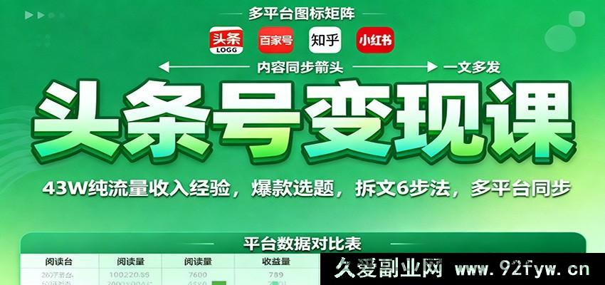 此课程乃是聚焦于爆文创作变现的精品课程,全方位深入剖析头条号整个变现体系,细致涵盖账号定位、爆款选题发掘、素材高效收集、内容匠心创作、巧妙排版配图以及精准数据优化这六大关键核心模块。借助43个极具实战性的案例剖析,倾囊传授单篇收益高达2243元的爆文创作秘籍,其中包括5种独特选题来源途径、10种实用素材运用技巧、6步精妙拆文之法以及微头条的5大开篇公式。同时,融合跨领域成长的宝贵经验与小众赛道的独特打法,助力学员熟练掌握从零基础到成功创作爆文的标准操作流程(SOP),达成每月稳定收入过万的变现宏伟目标。