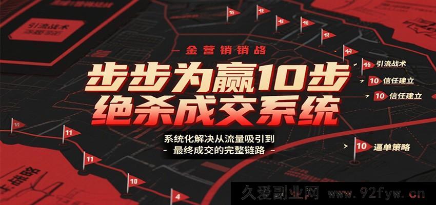 《步步为赢10步绝杀成交系统》,这是一款专为销售及营销领域精心打造的实战型课程。它以独特的十步流程——“吸睛勾魂→破冰封神→造场留人→望闻问切→痛点打击→夺心洗脑→攻欲煽情→价值塑造→化解顾虑→冲疯抢购”,全方位解决从流量引入直至最终促成交易的一整套流程。该课程巧妙融合心理学原理、话术构建方法以及场景式营销手段,助力学员迅速提高成交转化率,对电商、私域运营及线下销售等场景均具有极高的适用性。据部分学员分享,学习此课程后,单场直播的销售额提升了整整3倍,私域的转化效率更是实现翻倍增长。