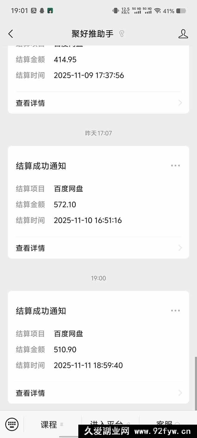 近30天达成了15个的业绩,虽说不算特别高,但这可都是兄弟们奋力拼搏的成果!!起初筹备训练营时规划了三个主要方向:迅雷、咸鱼虚拟、百度智能体。经过一番测试,发现智能体的转化效果颇为不错,所以当下全力主攻智能体,等稳定下来后再去钻研其他两个方向!我做网盘也有两年多时间了,始终奋战在一线,要是目前没有其他合适项目可做的兄弟们,不妨来了解一下~