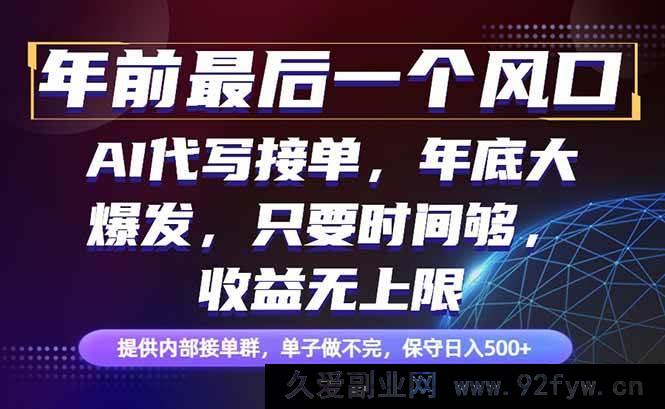 岁末之际的最后一个热门风口项目,抓住就能大获收益,只要你有闲暇时间,收益便没有封顶。小单几十到一两百,大单几百乃至上千。强烈建议大家尝试一番,要是你寻觅一个长期稳定的副业项目,代写无疑是你的最佳选择!市面上不少挂机项目都是噱头,要坚信一分耕耘一分收获,你全力拼搏,结果不会辜负你的付出!这个代写项目是我们内部正在运作的高利润项目,今日免费分享给大家,2025年最新的AI代写接单项目,操作简便极易上手,单日轻松盈利500+。常听我课程的小伙伴都清楚,我们团队在网创变现领域绝对是佼佼者。我们团队分享的课程极为详尽,全程干货满满,细节之处无可挑剔。关键在于目前市面上没人免费教学,收费基本都在3000+,所以做的人并不多。与此同时,我们还攻克了AI代写的三大难题,其一,大家完全不必担忧学不会,我们团队有专业指导老师授课,不定期通过腾讯会议解决学员实操中的各类问题,还持续免费更新最新指令;其二,对新手小白格外友好,无需任何繁杂操作,学会后做一单只需几分钟;其三,解决了平台接单问题,我们提供接单渠道,还传授接单方法,高客单价单子接到你应接不暇,只要有时间,单子数量不限,而且短期内就能见到收益。按照我们团队测试的方法,正常一单一结当天就能看到收益,稍慢些的也有周结和月结,比较灵活。趁现在知晓的人还不多,小伙伴们赶紧去实践操作!我也期待听到大家的好消息!