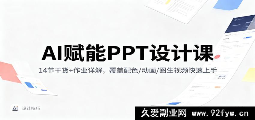 课程目录:0. 前言 (小瓶盖儿).mp40. 前言(困困困不醒大王).mp41. 第一课 1:设计四大原则(对齐、对比).mp41. 第一课 2:设计性四大原则(亲密、重复).mp42. 第二课:图片处理小窍门,让画面更具质感.mp43. 第三课:绘制图形,巧妙运用布尔运算.mp44. 第四课:获取素材,AI助力创意满满.mp45. 第五课:告别不协调的配色,让画面更舒适.mp46. 第六课:动画基础,让画面动起来.mp47. 第七课:设计中的层次,把握美化的核心.mp48. 第八课:组件的运用,高效利用组件库,快速打造专业PPT.mp49. 第九课:页面构思,解密封面、过渡、内容页的制作秘诀.mp410. 第十课:动画组件库,动画刷一学就会,灵动页面跃然眼前.mp411. 第十一课:人物开口说话,Ai让课本角色“活”起来.mp412. 第十二课:创意吸睛字体,Ai生成标题文字,打造令人眼前一亮的封面标题.mp413. 第十三课:图生视频,让课本静态插图动起来.mp414. 第十四课:控制人物形象,分段完成课本故事.mp415. 绘制图形作业详细讲解.mp416. 配色方法作业详细讲解.mp417_寻找素材作业详细讲解.mp418_图片处理作业详细讲解.mp419_四大原则作业详细讲解.mp4