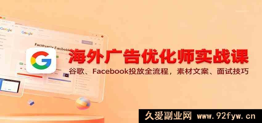 “海外广告投放训练营”是一门专为零基础学员打造的体系化海外广告优化课程,重点围绕谷歌广告平台操作、Facebook广告投放、账户优化技巧以及面试求职指导这四大核心板块。课程从广告专业术语以及Google广告网络原理入手,全面覆盖UAC广告、搜索广告、机器学习应用等谷歌广告的全流程环节,同时深入剖析Facebook账号结构、广告优化以及ROI提升的方法,再结合简历撰写、面试技巧等求职相关指导,助力学员迅速掌握海外广告投放的能力。