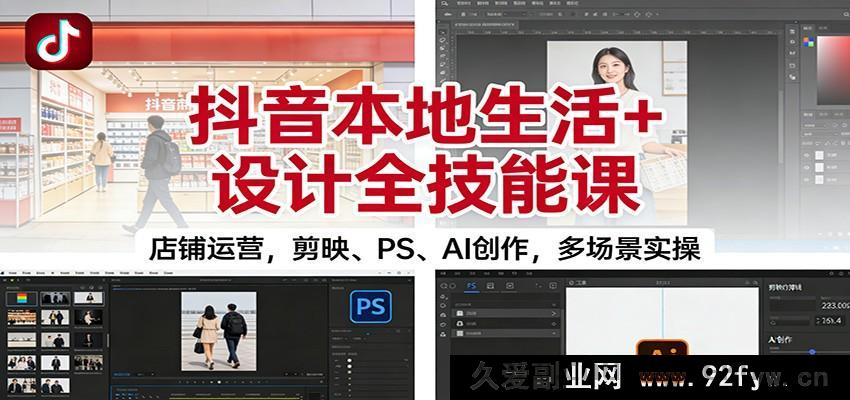 此课程是融合抖音本地生活运营、视频剪辑、平面设计以及AI创作的综合性技能实战课程。它涵盖抖音酒店商家运营的全流程(包括店铺管理、团购上架、达人带货等方面)、剪映专业版的核心剪辑技巧(像关键帧、蒙版、调色等内容)、Photoshop的初中高级应用(涉及图层、选区、修图等知识)、即梦AI绘画与视频生成技术(含数字人、图生视频、智能画布等功能),通过系统化的教学模式助力学员掌握多平台内容创作与商业变现的能力。