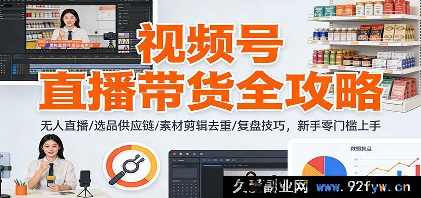 这是一门别具一格的视频号带货从0到1的实战培训课程,全方位囊括直播运营、无人直播、素材制作以及选品变现的全流程。课程从对直播声音画面的精妙优化、极具吸引力的互动逼单技巧着手,系统阐释无人直播的搭建要点、供应链的精准对接、素材的巧妙获取与去重方式、剪辑的专业方法,还涉及书单号、美食号等细分领域的独特玩法,借助多次切实有效的实战复盘助力学员掌握在家创业且成本低廉的完整带货途径。