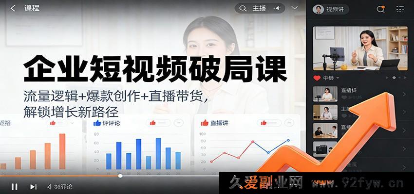 这门专为企业打造的短视频进阶课程,旨在助力企业在短视频领域实现质的飞跃。课程从全新角度切入账号定位,深入剖析对标账号拆解的奥秘,精准解密短视频算法规则,全面覆盖爆款内容创作、独特标题文案撰写以及高效批量生产脚本等关键技能。不仅详细阐释流量底层逻辑与破圈新方法,还聚焦直播带货、同城探店、知识主播转型等多元赛道策略,精心拆解海陆空全方位流量获取途径。结合男女消费特性,深度优化变现策略,包含提升付费 ROI 及流量转价值的实用技巧。全程干货丰富,助力企业迅速突破短视频运营困境,构建从流量到成交的完美闭环。企业短视频进阶之旅├1.探寻独特对标账号——从借鉴到引领创新.mp4├10.流量的两大关键影响因素——定量与变量的深度剖析.mp4├11.开启流量第二曲线——创新驱动破圈发展.mp4├12.手把手带你玩转短视频直播带货实战.mp4├13.2.5版商业结构革新——重塑中间商格局.mp4├14.知识创造价值——企业短视频从0到1的进阶之路.mp4├15.构建立体[海陆空]流量网络策略.mp4├16.进阶版企业流量获取秘籍.mp4├17.流量转化为价值的精妙之道.mp4├18.获取网红流量的独门绝技.mp4├19.获取话题流量的创新思路.mp4├2.打造极具价值的视频内容新模式.mp4├20.获取电商流量的独家攻略.mp4├21.洞察女性消费特征的奥秘.mp4├22.解密男性消费特性的关键要点.mp4├23.短视频五大选题策略的全新视角.mp4├24.高效批量生产爆款文案的创新方法.mp4├25.用剧情脚本引爆流量的创意手段.mp4├26.4种新颖标题撰写技巧.mp4├27.4种别具一格的爆款文案结构.mp4├28.打造同城号的独特法则.mp4├29.探店号打法的别样思路.mp4├3.揭秘短视频算法规则的核心要点.mp4├30.0粉开启直播号的神奇路径.mp4├31.知识播主与电商主播的差异与融合.mp4├32.从带货到知识转型的华丽转身.mp4├33.赛道选择决定成败——知识赛道的精准定位.mp4├34.知识主播打开认知的全新起点.mp4├35.知识主播精准定位的独门诀窍.mp4├36.知识主播四大核心训练之心态突破.mp4├37.知识主播四大核心训练之说话艺术.mp4├38.知识主播四大核心训练之底线坚守.mp4├39.知识主播四大核心训练之成交提升.mp4├4.规避短视频的致命误区.mp4├40.总结——内容为本,成交为核的深度领悟.mp4├5.精心策划主页,瞬间抓住客户.mp4├6.精准定位短视频账号的创新思路.mp4├7.提升付费 ROI 的高效方法.mp4├8.突破短视频播放量的创新策略.mp4├9.探寻流量底层逻辑的增长与可持续性.mp4