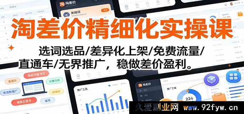 这套淘宝淘差价全方位实战课程,是针对零基础学员精心打造的无货源差价盈利体系课程,其中包含了从2023年至2025年持续更新的丰富干货内容。课程从店铺筹备的初始阶段讲起,包括开店所需的基础准备工作,如货源插件的运用、淘宝账号的精准设置等。系统地剖析了热搜选词的技巧,深入讲解精细化差价选品的核心方法,同时教会学员如何巧妙规避违规风险,迅速打造小爆款商品。课程还涵盖宝贝的差异化上架策略、店铺冷启动的有效方法、免费推荐流量的优化技巧、客服与大促运营的实用技能,以及1688拍单售后、货源筛选、防恶意买家的实际操作。配套有低价直通车、无界推广、全站高投产的独特玩法,详细阐释后期供应链的优化、私域布局的构建以及多店放大收益的具体方法,全程注重实战落地,手把手引导学员透彻掌握淘差价盈利的逻辑,轻松开启店铺并稳定赚取差价。课程目录如下: