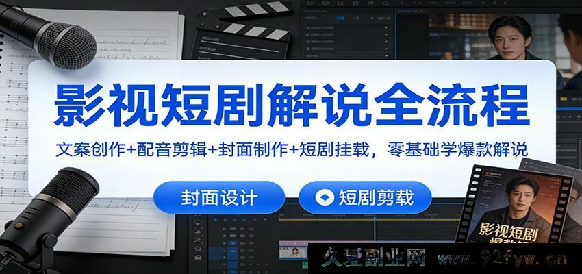 这套优质影视短剧解说课程,全面包含影视解说与短剧解说全品类创作秘籍,即便毫无基础也能顺利掌握。课程从关键的文案创作着手,传授AI制作文案、原创文案思路以及快速写文案的诀窍,同时配套录音调音、音效素材等配音方面的干货知识;全方位覆盖手机与电脑双端素材下载、去水印去字幕、剪辑实操等技能。详细讲解选剧起号技巧、封面制作、中视频发布流程,还涉及独白解说的文案撰写、声音克隆、水印制作等进阶内容,以及短剧选品、剪辑、配音、挂载任务实现盈利的完整流程。全程通过实际操作教学,搭配海量素材与工具,悉心指导你打造热门影视/短剧解说作品,轻松开启解说盈利之门。课程目录如下:├入精选签独家│├通过AI制作文案的方法.mp4│├探索原创文案思路.mp4│├亲身实践.mp4│├关于录音设备和配置的文档.docx│├快速写出文案的途径.mp4│├调音的有效方法.mp4│├值得收藏的音效││├素材网站.txt││├老师常用的两种音效图片1.png││├老师常用的两种音效图片2.png││├麦克风参数相关图片1.png││├麦克风参数相关图片2.png││├麦克风参数相关图片3.png││├麦克风参数相关图片4.png││├麦克风参数相关图片5.png├影视课程│├掌握剪影基础.mp4│├含去水印+文案提取+配音神器的图片.jpg│├去除字幕的操作方法.mp4│├如何制作边框式封面.mp4│├怎样选剧能让自己的账号更火爆.mp4│├安卓手机下载素材的方法.mp4│├两次亲身实践.mp4│├实操2.mp4│├高清封面.mp4│├再次快速写出文案的技巧2.mp4│├手机三连式封面制作.mp4│├手机发布中视频的流程.mp4│├手机影视解说片段1.mp4│├手机影视解说片段2.mp4│├文案课程.mp4│├电脑下载素材的办法.mp4│├电脑去除字幕的步骤.mp4│├电脑发布中视频的流程.mp4│├电脑封面制作方法.mp4│├苹果手机下载素材的方式.mp4├独白课程│├利用AI指令制作文案的方法.mp4│├克隆声音的软件││├AI声音克隆文件0622│││├GPT-SoVITS-beta0221.rar│││├必看视频教程.mp4│││├测试用的声音素材压缩包.zip│├剪辑成品的操作流程.mp4│├选剧及账号适配哪种剧的技巧.mp4│├封面制作的方式.mp4│├封面模板素材图片.jpg│├开场字幕的制作方法.mp4│├独白文案的撰写技巧.mp4│├移动水印制作方式.mp4│├素材网AI指令.txt│├选取克隆原声的标准.mp4│├透明水印制作方法.mp4├短剧课程│├选剧与下载素材的第一步.mp4│├寻找文案的第二步.mp4│├撰写文案的第三步.mp4│├文案配音的第四步.mp4│├短剧剪辑实操的第五步.mp4│├挂载短剧任务发布的第六步.mp4│├短剧常用背景乐││├不同样式的图片1.png││├不同样式的图片2.png││├不同样式的图片3.png││├不同样式的图片4.png││├不同样式的图片5.png