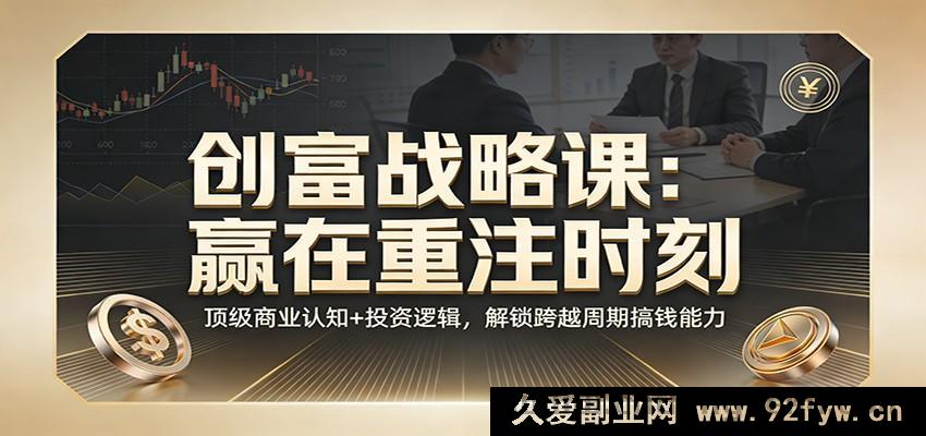 《创富战略课:赢在重注时刻》属于高端创富战略类课程,深度整合顶尖商业认知、投资核心逻辑与创业心态培育方法,专门面向想要跨越行业周期、跳出同质化竞争红海的创业者与投资者打造。课程形式多元,涵盖大咖深度对谈、核心主题授课与专属专业复盘,同时搭配音频与文字稿两类学习素材,具体包含加密小王子的两轮对话分享、《赢在重注时刻》核心内容讲解,以及蒋宇飞的专属总结内容。