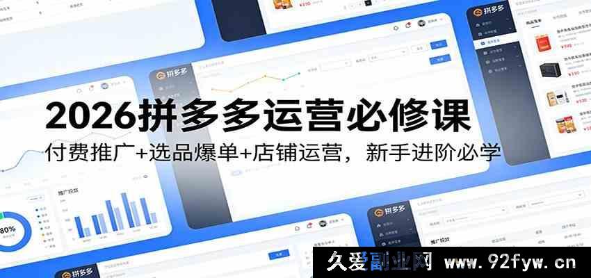 《2026拼多多运营成长进阶实战课》共包含66节核心实操课时,是一套面向拼多多新老商家与运营人员的全流程成长教程,从基础入行到高阶运营全覆盖。课程先从平台流量底层逻辑、权重算法逻辑讲起,循序渐进地讲解店铺注册、类目挑选、保证金认知这类前期筹备内容,随后深入拆解选品思路、定价策略、标题撰写、主图设计、详情页打磨等单品链接优化的实操方法。重点解读2026年全新的付费推广玩法,涵盖全域流量起量、精准调价换量、数据精细化优化等核心操作,搭配秒杀活动报名、原价卡大促设置、跨店满减配置这类营销工具的使用技巧,同时覆盖免费自然流量获取、短视频引流、多账号矩阵裂变等多类获客路径。此外还包含SKU布局规划、爆款单品维护、客服团队搭建、售后问题处理等全链路运营内容,搭建起“前期筹备-流量获取-转化提升-后期维护”的完整运营闭环,手把手传授可直接落地的运营技巧,帮助商家快速吃透2026年拼多多的运营逻辑,实现店铺稳定增长、高效出单。