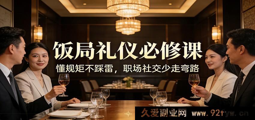 这套教程是专为常出席饭局、酒局与职场应酬人群打造的饭局酒局避坑实操指南,全篇五千三百余字全是纯干货内容。不少人因为不熟悉饭局里的不成文规矩,非但没能拉近和他人的关系,反而得罪领导、耽误了自身发展前程。教程从最核心的敬酒礼仪展开讲解,细致拆解按照职位、年龄、身份划分的敬酒次序,帮助大家分清尊卑分寸、坐对合适位次、用正确称呼,绝不抢领导的风头。同时覆盖敬酒的最佳时机、顺时针逆时针敬酒原则、不跳人不敬等关键细节,将饭局中不能做、不能说、容易出错的事项一次性讲透彻。学完之后,你在任何饭局都能从容得体、以高情商应对,既给足对方面子,也能为自己积累人脉与发展机会。